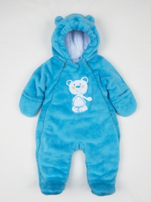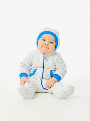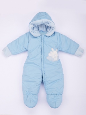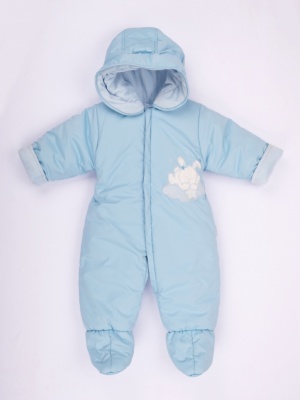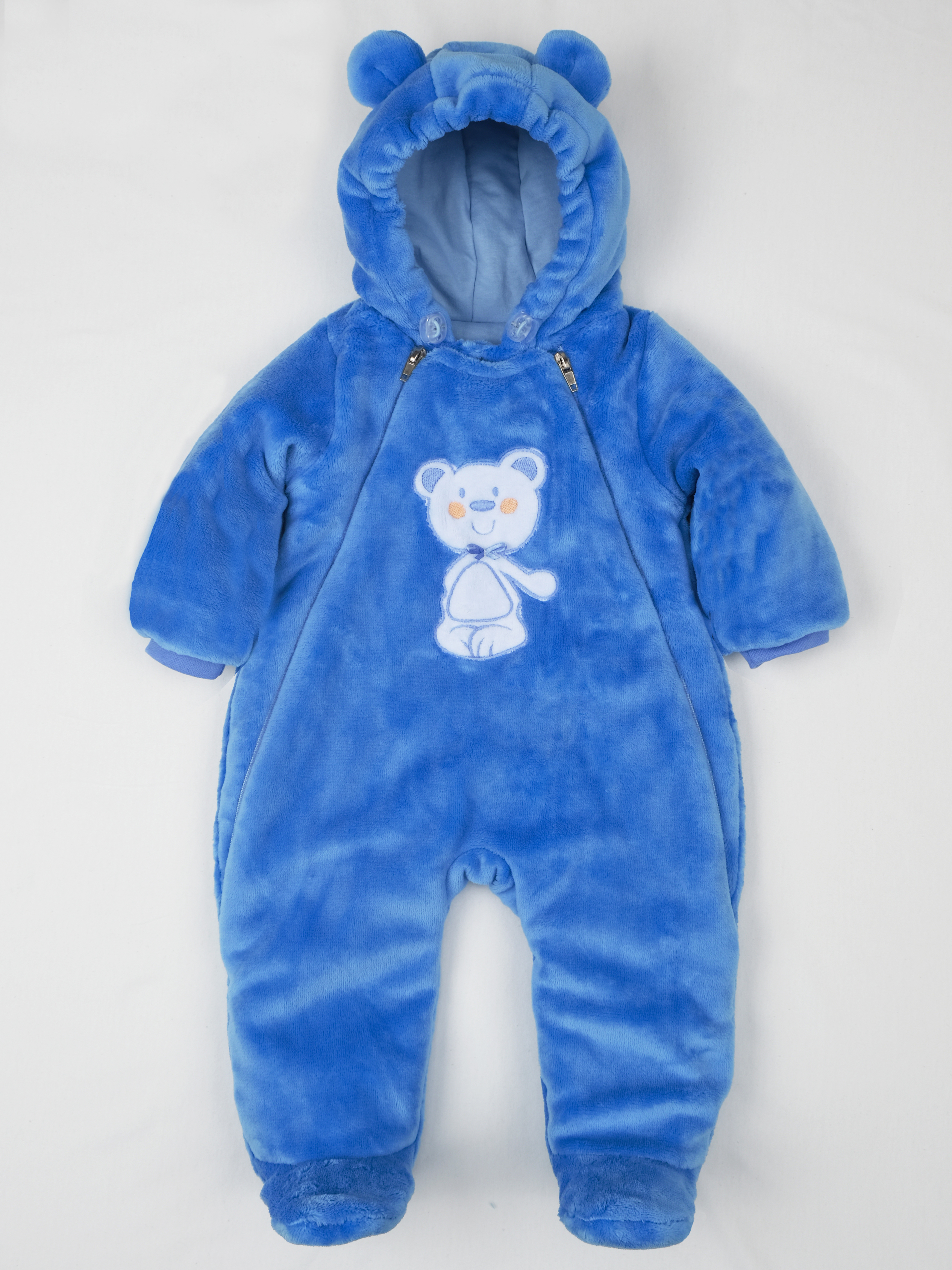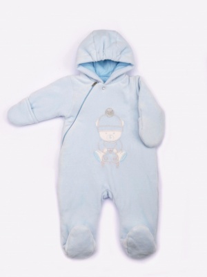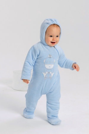 Комбинезон с капюшоном из велсофт на подкладке 100% хлопок утепленный синтепоном 100гр. Комбинезон свободного силуэта. Рукав длинный, заканчивается манжетой. В капюшон вставлена шляпная резинка с фиксаторами. Застежка спереди на 2 молнии. Украшен красивой вышивкой и бантиком. КомбинезоныЦвет: ярко-голубой, 74 светло-голубой - 1 ед