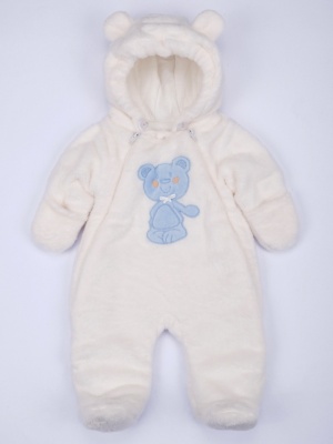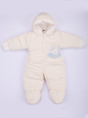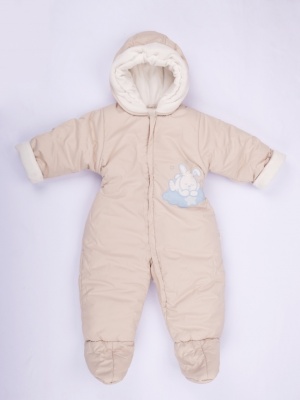 Пушистый, теплый комбинезон-кокон из велсофта. Комбинезон на кулирной подкладке (100% хлопок) и на синтепоне - 100 грамм. Застежка на две молнии - очень удобно положить новорожденного ребенка. Рукава с отворачивающимися рукавичками, чтобы маленькие ручки всегда были в тепле. В подрезах комбинезона обработаны специальные карманы - для пристегивания малышка к автолюльке. Капюшон с кулиской, в которую вставлена шляпная резинка с фиксаторами. Полочка украшена вышивкой и бантиком. КомбинезоныЦвет: экрю мальчик