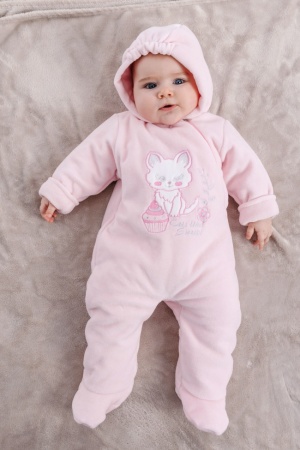 Замечательный комбинезон с капюшоном из велюра на кулирной подкладке - 100% хлопок. Застегивается на кнопочки, украшен вышивкой и стразами. КомбинезоныЦвет: 56 62 68 74 св.голубой, 56 62 68 74 розовый, 56 62 экрю с розовой вышивкой, 56 62 экрю с голубой вышивкой, 68 74 темно-голубой