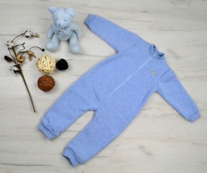 Замечательный комбинезон из интерлока. Горловина обработана окантовкой, на которой стоит кнопка. В левый шов реглана втачана застежка молния. Полочка комбинезона украшена оригинальной печатью. Куртки, комбинезоныЦвет: серый меланж/окантовка василек, синий, красный