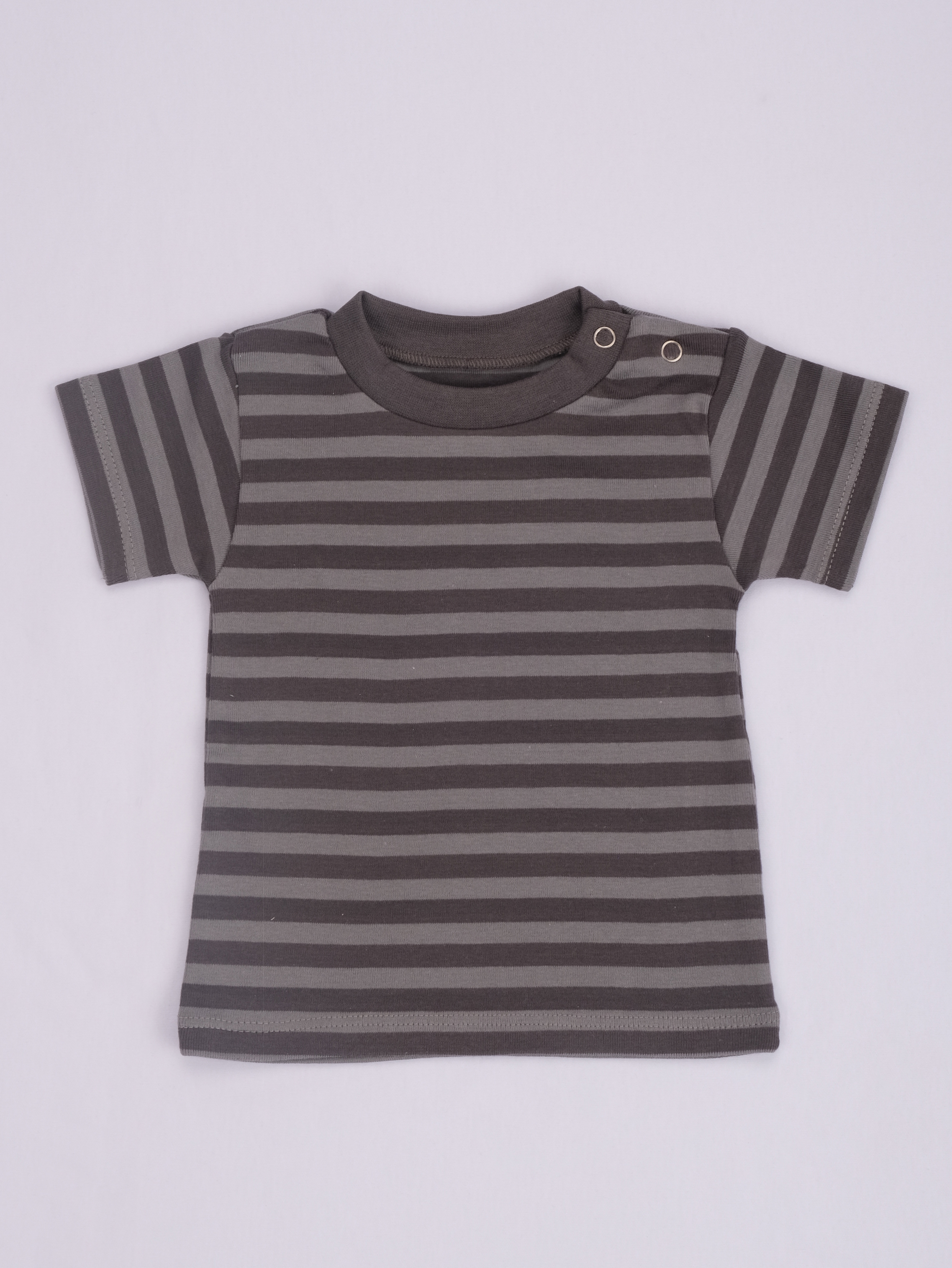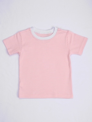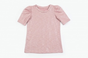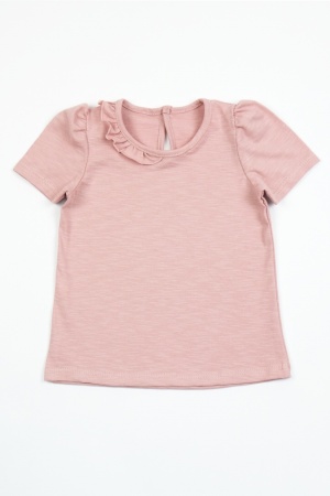 Нежная футболочка детская из плотного трикотажного полотна - рибана 1/1. Футболочка приталенного силуэта, с короткими рукавами. Горловина обработана воротничком, в плече застежка на кнопочки для удобства надевания.