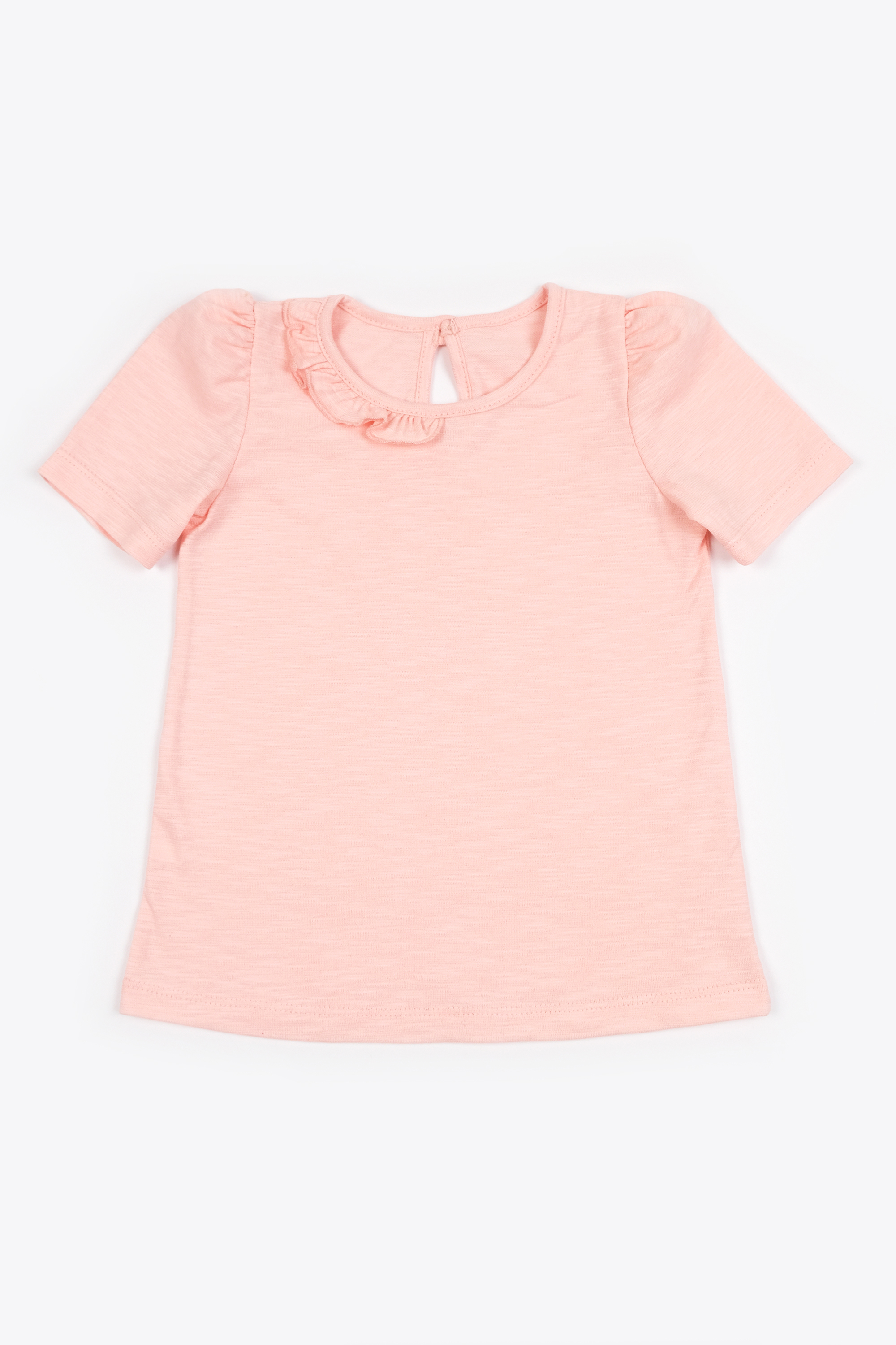 Нежная футболочка для маленькой принцессы. Застежка на спине на пуговку, горловина украшена оборочкой.