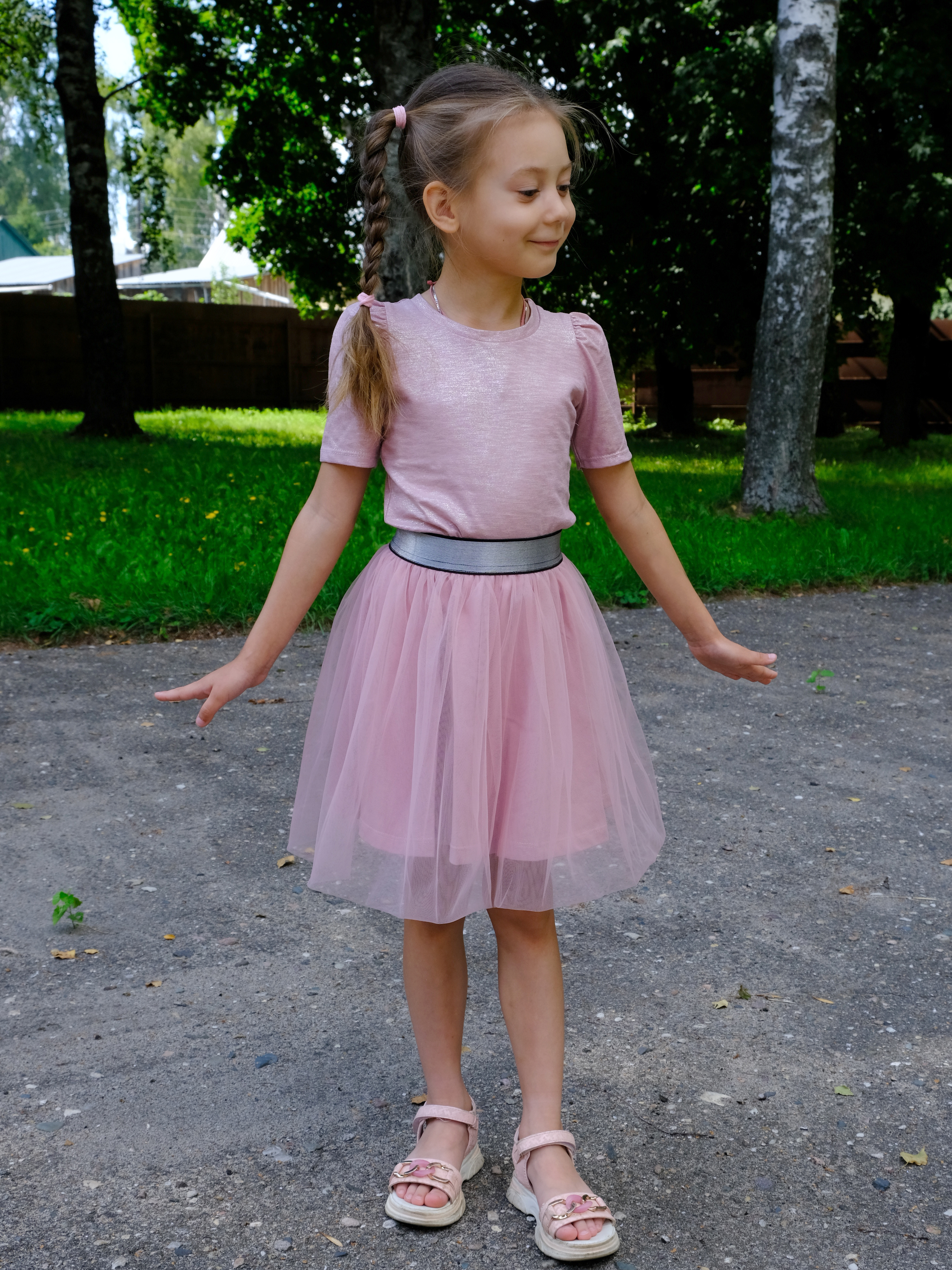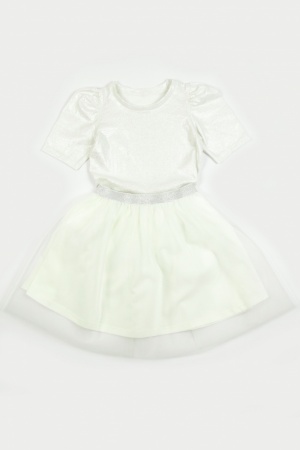 Нарядная футболочка для девочки из трикотажного полотна - слаб. Слаб это легкое полотно, дышащее и очень нежное. Данная модель выполнена из слаба с серебряным напылением, что придает ей праздничный вид. Рукава фонарики очень мило будут выглядеть на плечиках девочки.