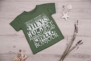 Джемпер с короткими рукавами из кулирного полотна. Полочка украшена печатью, горловина с удобным капюшоном.