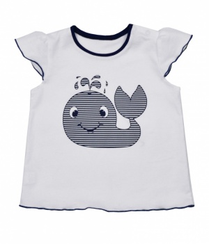 Симпатичная футболочка для девочки из кулирного полотна. Застегивается в плече на кнопочки. Украшена печатью - китиком. Футболочка отлично сочетается со штанишками 08366 ипс.