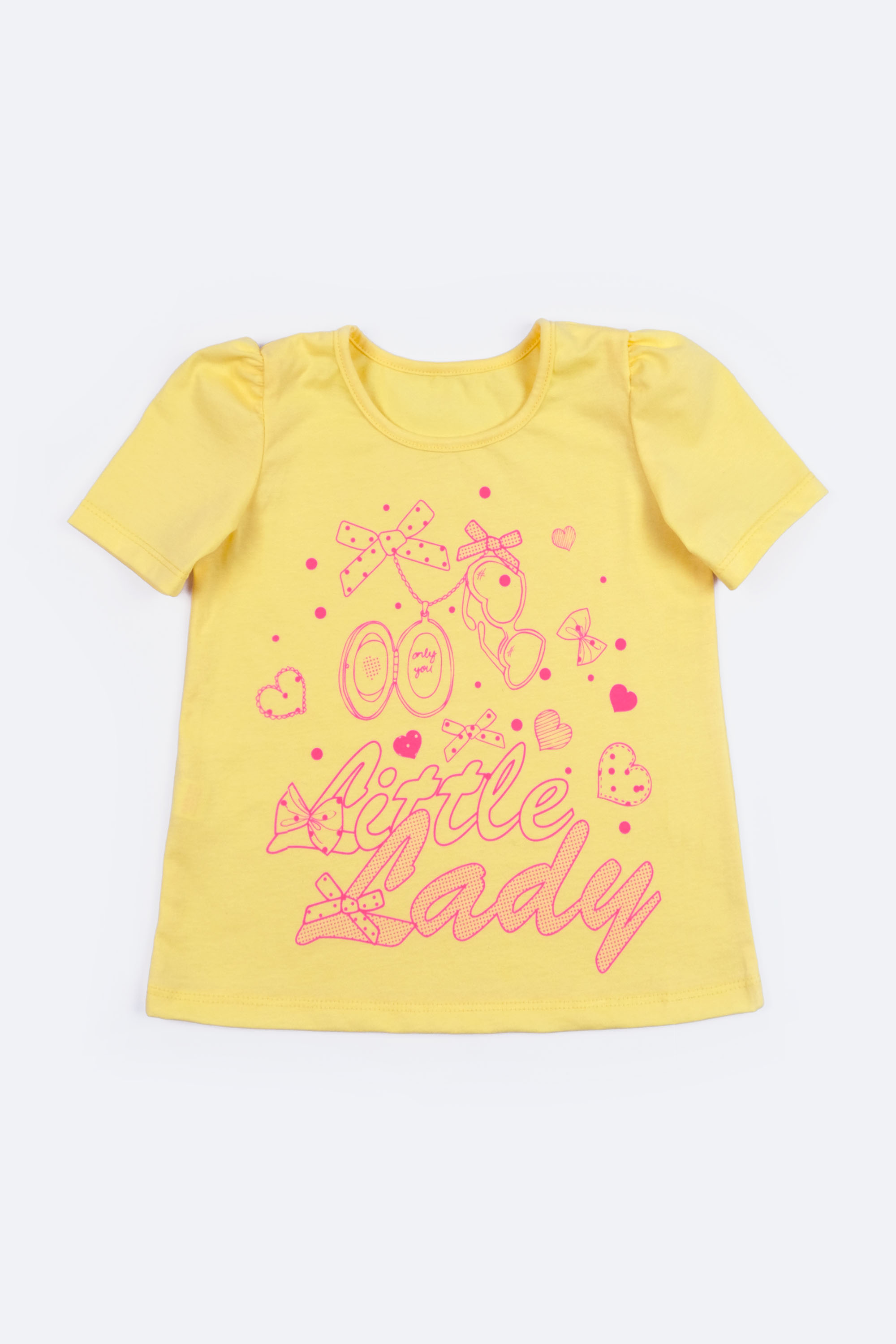 Нежная, красивая футболка из кулирного полотна с печатным принтом по переду. Рукава - фонарики. Кулирная футболка идеально подходит для летних прогулок или похода в детский сад. ФутболкиЦвет: св.желтая, розовая, малина, красная, лиловая