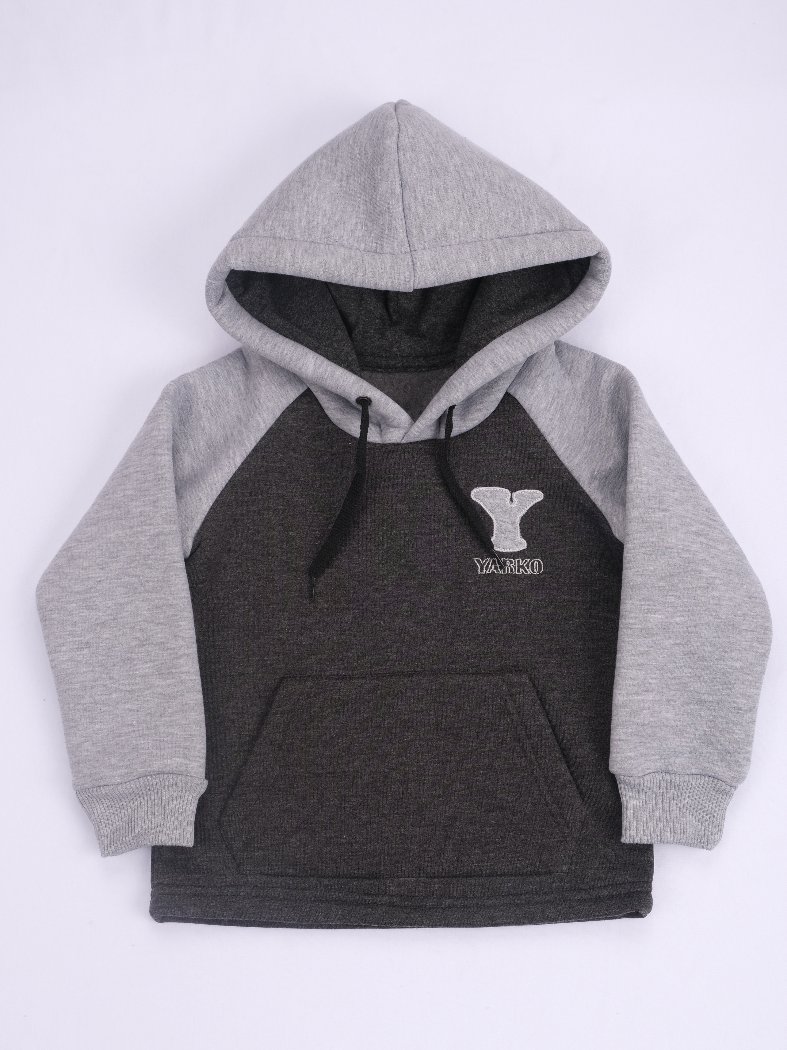 Джемпер с капюшоном выполнен из 2-х ниточного футера с лайкрой. Джемпер спортивного силуэта. Рукав длинный на высокой манжете. На полочке слева вверху есть вышивка.