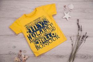 Футболка из кулирного полотна, прямого силуэта. Спинка и полочка цельнокроенные. Рукав короткий покроя "реглан". Полочка украшена печатью.
