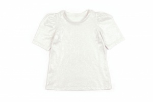 Нарядная футболочка для девочки из трикотажного полотна - слаб. Слаб это легкое полотно, дышащее и очень нежное. Данная модель выполнена из слаба с серебряным напылением, что придает ей праздничный вид. Рукава фонарики очень мило будут выглядеть на плечиках девочки.